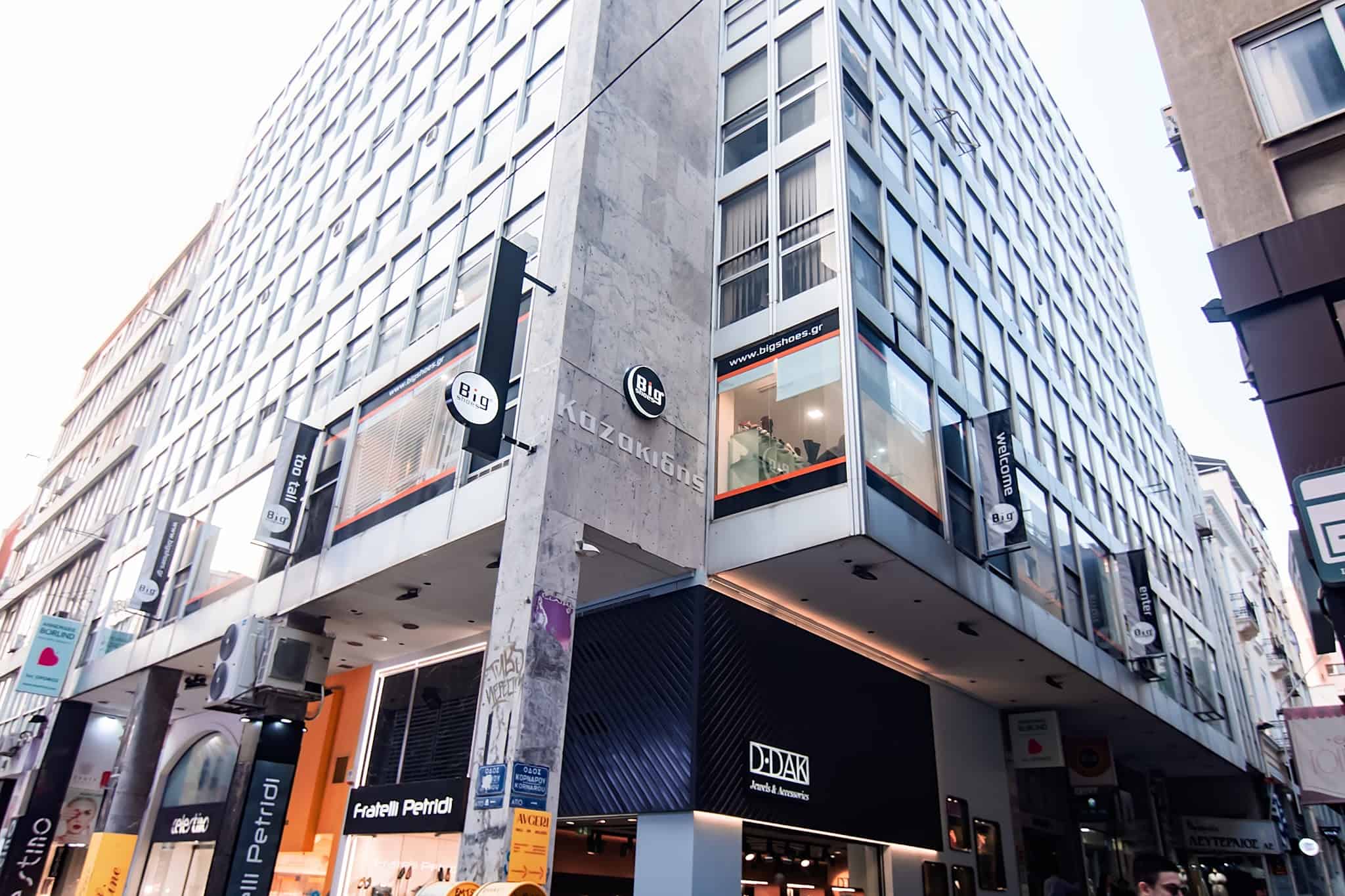 Από το 1968 και πλέον στο νέο μας κατάστημα στην οδό Ερμού 30 & Κορνάρου 1 στον 1ο Όροφο, λειτουργεί κατάστημα υποδημάτων με εξειδίκευση στα μεγάλα μεγέθη, παραγωγής και εισαγωγής της εταιρίας Big Shoes.Παπούτσια και αξεσουάρ αποκλειστικά σε μεγάλα μεγέθη,για τον άνδρα που φορά από το 46 μέχρι το 53 και για την γυναίκα που φορά από το 41 μέχρι στο 46.